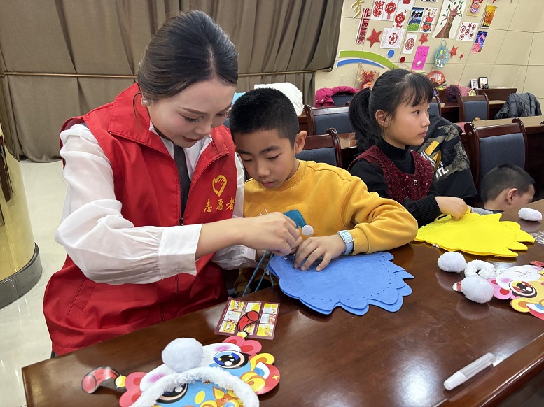 活动中,孩子们在听取了社区志愿者关于蛇年的故事后,开始制作起了自己专属的寓意喜气和吉祥的元宵蛇头帽。在志愿者的指导下,小朋友们用彩纸、剪刀、胶水等材料,按照制作的步骤小心翼翼地拼接起来,在一双双小手的努力下,一个个可爱的小蛇帽呈现在大家面前。传统的年味与现代的朝气奇妙融合,不仅让孩子们体验到了动手实践的乐趣,激发他们的创造力和想象力,还感受到了新年的欢乐氛围和中国传统文化的魅力。