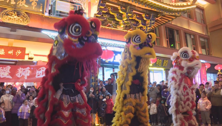 春节期间,敦煌市大街小巷洋溢着欢乐祥和的节日氛围。2月8日晚,一支充满活力的舞狮队走进敦煌夜市,为市民和游客带来一场精彩绝伦的舞狮表演,吸引众人驻足,为热闹的夜市增添了浓厚年味。