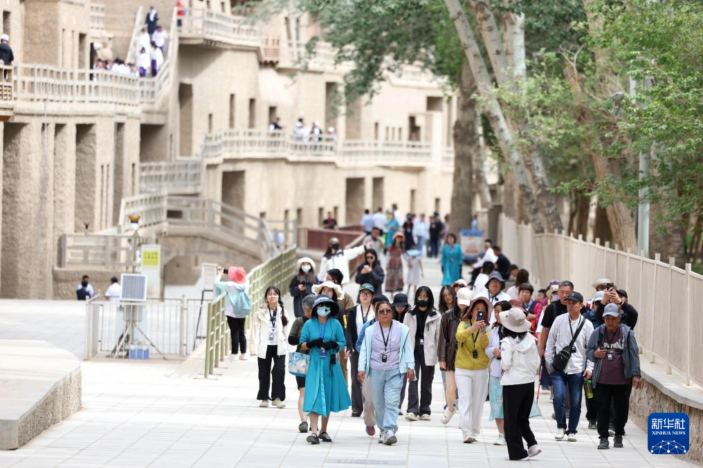 2024年6月7日,游客在莫高窟参观游览。新华社记者 郎兵兵 摄