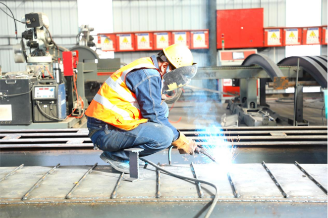 在东老爷山隧道口复工施工现场,机械轰鸣声不绝于耳,焊花四溅,施工人员统一佩戴安全帽,以饱满热情和昂扬斗志,在各自的作业区域内忙碌穿梭,各项施工工序有条不紊地推进。在连接板打孔机前的施工人员柴希伟正专注地工作着,他告诉记者:“我的主要职责是给连接板打孔,平均每小时能完成近100个连接板的打孔任务。”