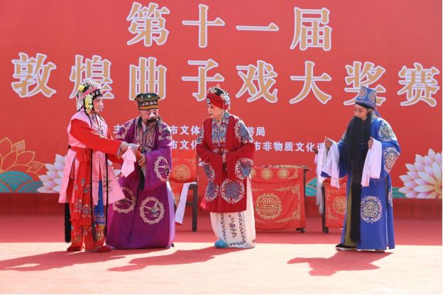 第二十五届敦煌曲子戏大奖赛现场,原生态的唱腔与三弦、板胡的悠扬乐声交织。游客与当地百姓共坐长凳,看《磨豆腐》《母子情》等经典剧目轮番上演。诙谐的方言俚语、生动的市井故事,让这项国家级非物质文化遗产瞬间“活”了起来。