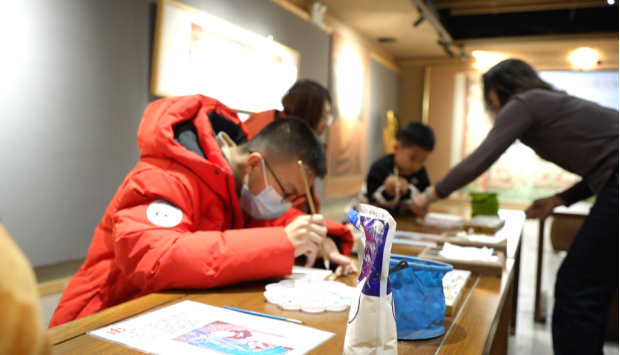 大年初三,福州的12名亲子研学团成员来到敦煌,开启了为期六天的河西走廊研学之旅。小朋友们在家长的陪同下共同参观了敦煌画派美术馆。一幅幅精美绝伦的壁画作品,以其独特的艺术语言和丰富的历史内涵,静静地讲述着千年的故事。在专业老师的引导下,通过壁画临摹、沙画诗词创作等活动,让青少年在艺术实践中读懂中华文明包容开放的基因密码。