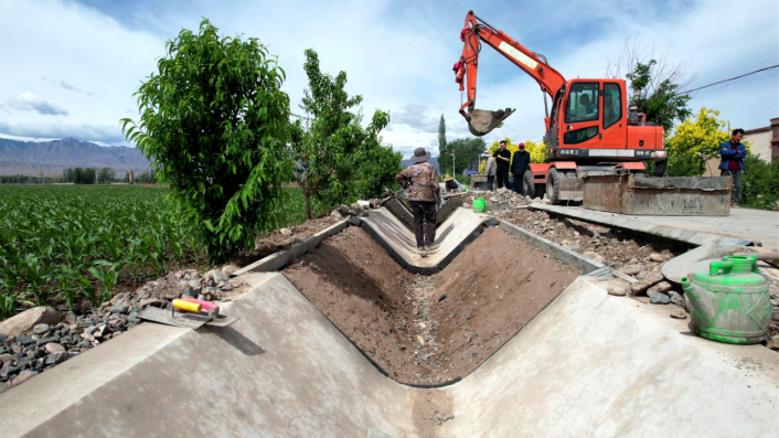 甘州区上三中型灌区续建配套与节水改造项目渠道施工现场