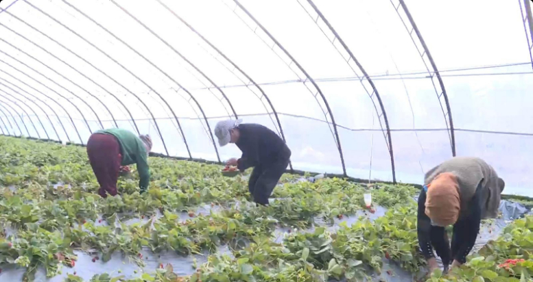 这两天,敦煌市七里镇秦家湾村戈壁农业示范园区的温室大棚里香气四溢,草莓、西红柿、人参果等果蔬已成熟上市,村民们忙碌的身影穿梭其间,抢抓农时展开全面采收工作,园区内呈现出一派繁忙的丰收景象。