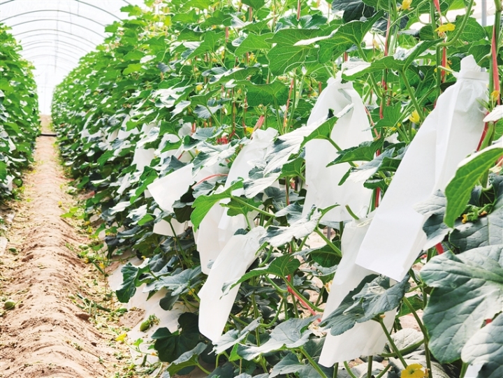 独山子乡金泉村村民马二洒在蜜瓜种植过程中尝到了甜头。去年,他从乡里订购蜜瓜苗种了20亩蜜瓜,亩产3000公斤,通过订单农业直供沿海市场,每亩净收入8000多元。“以前种玉米一年挣不到3000元,现在种蜜瓜收入翻了两番。”马二洒说。