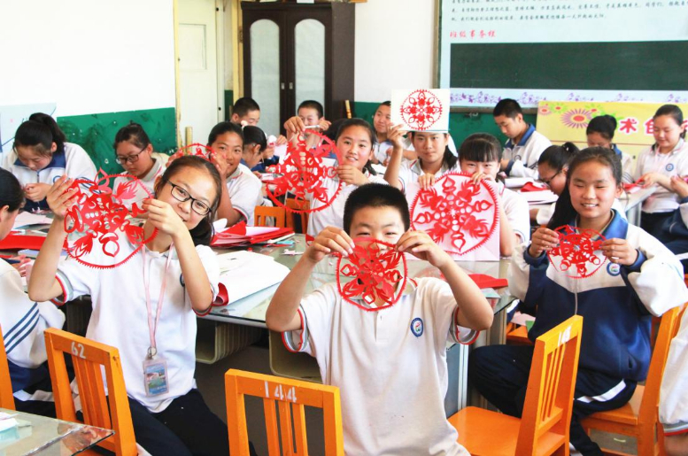 在敦煌市第三中学,“传文化薪火、承非遗工艺”千名学生学剪纸活动已成常态,课堂上,教师为大家讲授剪纸的起源、适用场景、风格多样的剪纸类型以及剪纸背后所表达的民俗传说和美好愿望。孩子们通过剪纸系列课程的学习,对剪纸的“折、画、剪”技巧游刃有余,“人人学非遗,人人传非遗”的良好氛围在潜移默化中逐渐形成。