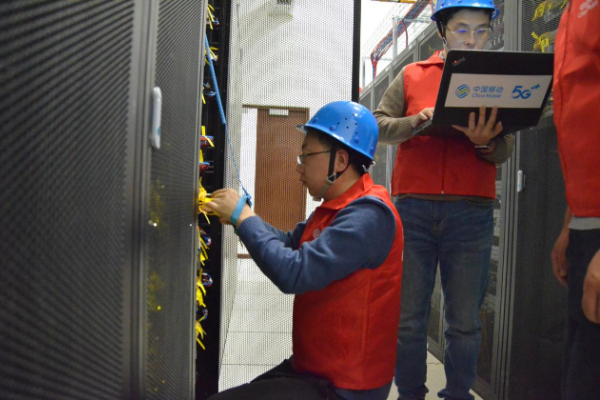 中国移动甘肃公司工作人员正在开通5G-A 3CC网络设备