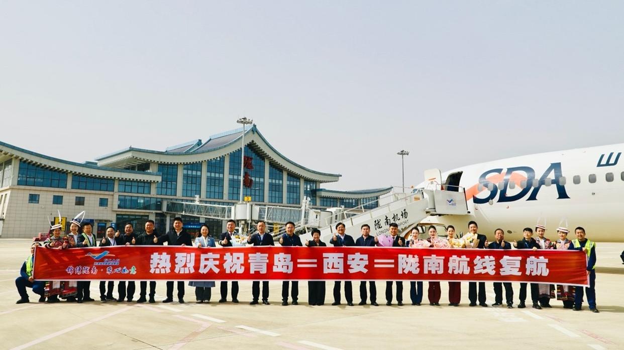 作为东西部协作的重要载体,该航线自2018年3月25日首航以来,成为推动东西部协作的重要通道。2023年10月,受航线运营成本攀升等因素影响停航。停航期间,陇南市政府联动山东航空、青岛机场集团,担负起东西部协作与互联互通的使命,围绕航权、时刻、客货源等难题展开攻坚,最终突破瓶颈,促使航线顺利复航。