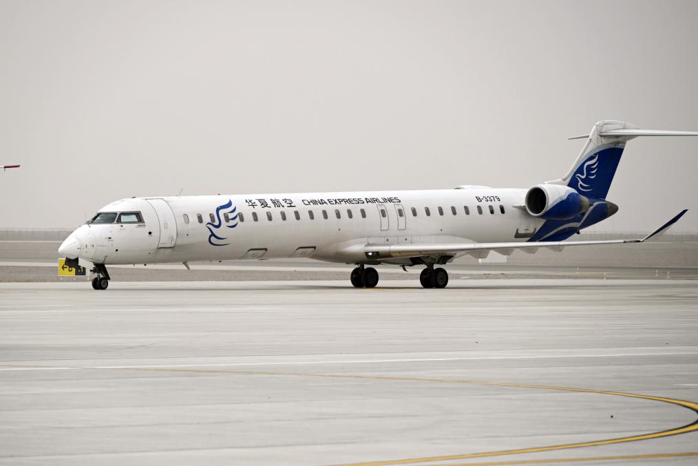 3月30日,敦煌-哈密-库尔勒首航航班降落在甘肃敦煌莫高国际机场。新华社发(张晓亮摄)