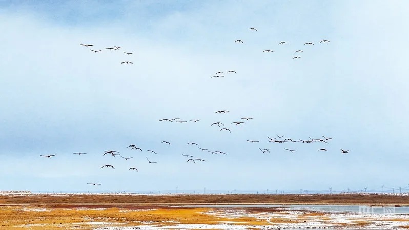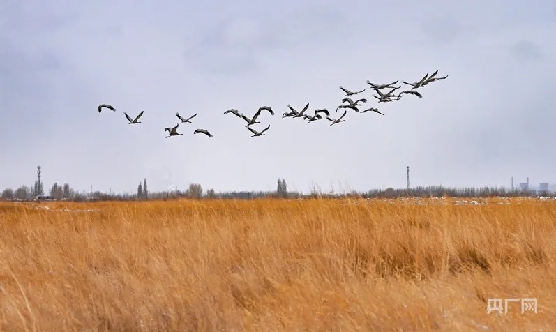 千只灰鹤在嘉峪关草湖国家湿地公园振翅高飞(央广网发 嘉峪关市融媒体中心供图)