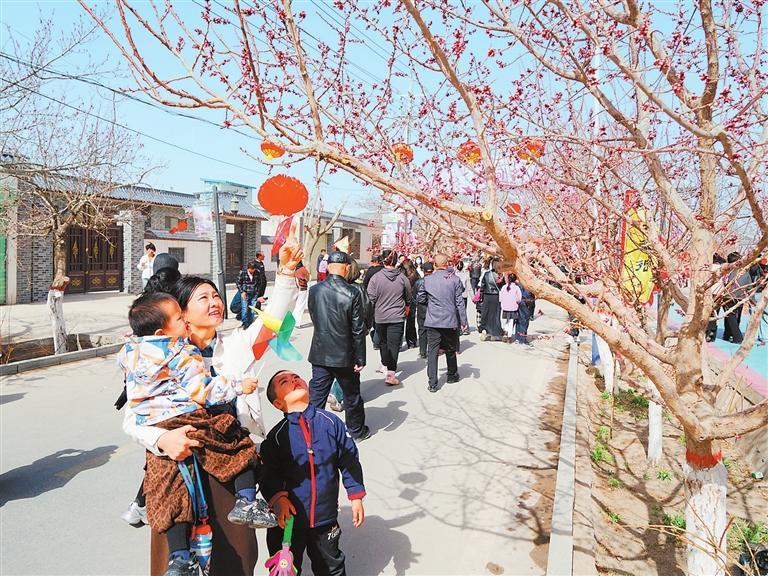 游客在金塔镇红光村杏花街游览。 新甘肃·甘肃日报记者 董文龙