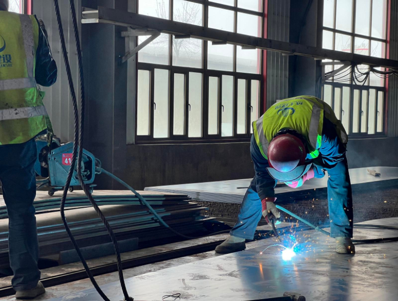 走进甘肃成丰项目施工现场,金属切割的嘶鸣与塔吊转动的嗡响交织成一片,头戴安全帽的工人们有序地忙碌着。