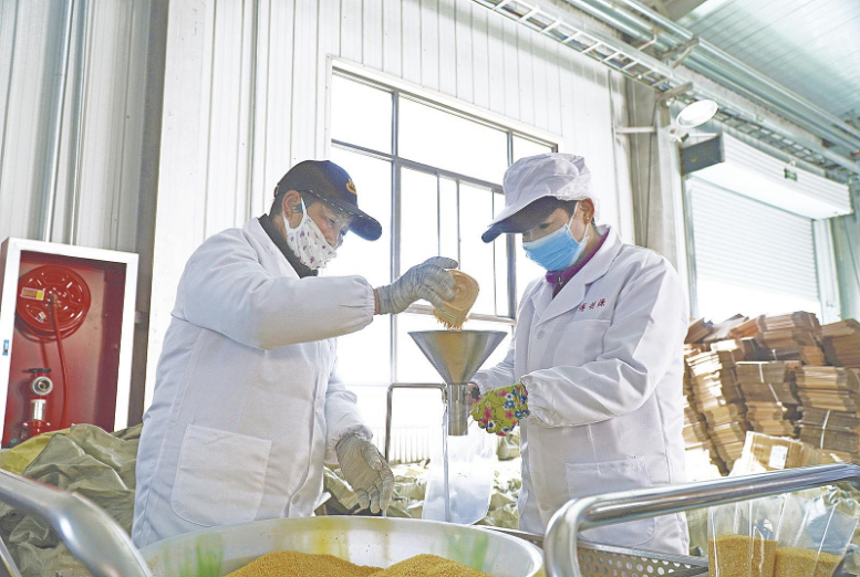 “现阶段,公司主要生产玉米面、玉米糁、玉米碴,通过线上线下进行销售,每月的销售量在10万单左右。”王凯说。