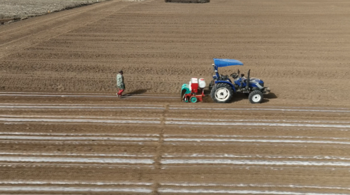 在上肖镇南李村千亩新品种玉米推广点,搭载北斗导航系统的拖拉机等机械在无人驾驶的情况下进行翻耕、覆膜,不但节省了人力成本,而且更加便捷高效。“拖拉机装上导航就能实现无人驾驶,降低了机手劳动强度,覆膜既平整效率又高,一天能轻松覆膜30多亩。”陇欣达农业专业合作社农机手李伟伟说。目前,上肖镇南李村千亩新品种玉米推广点的覆膜工作已接近尾声,为后面的种植赢得了“墒基”。