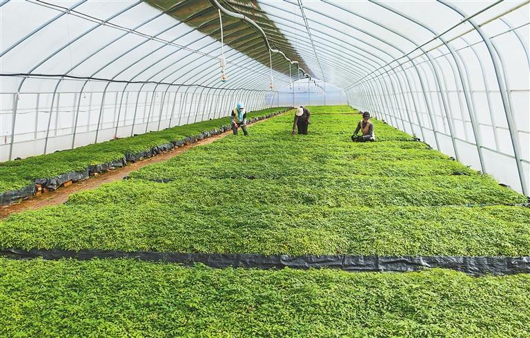 4月3日,在岷县西江镇中药材育苗基地温室大棚里,工人对当归苗进行田间管理。新甘肃·甘肃日报通讯员 马万安