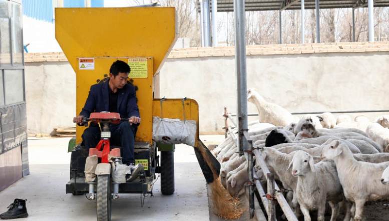 而在距离牛羊交易市场不远的东坝镇锦乐源肉羊养殖场,自动填料机、拌料机、粉料机等现代化设备应有尽有,1300多只小尾寒羊正在标准化的养殖棚里争相食用饲草料。谈到从以前的散养到现在规模养殖的转变,杨庆林对县上的扶持政策赞不绝口。