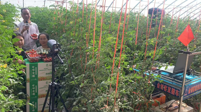 眼下,正值甘肃良禾肃味农业科技有限公司水果番茄成熟之际,该公司将直播间直接设在大棚中,手机变为了“新农具”,直播变成了“新农活”。