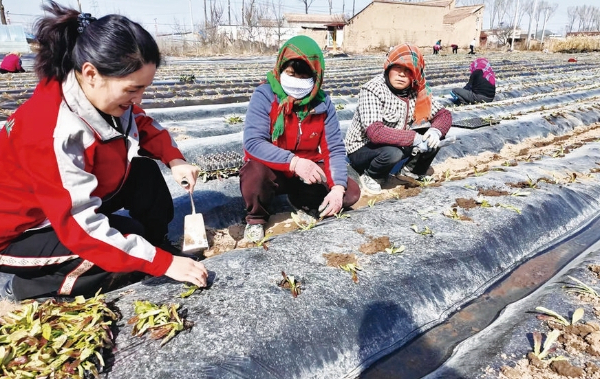 一垄垄排列整齐的菜苗在春日暖阳的照耀下绿意盎然,充满生机与活力。“我从今年初就在这里打工,现在负责红笋移植,采用计件制,一天工资120元,一起干活的有来自红台乡、井沟乡及积石山县等地的群众,干得很顺心。”务工群众张玲告诉记者,现在正是移栽菜苗的好时节,希望又是一个丰收年。