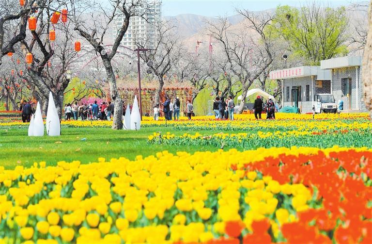 近日,永靖县南滨河路郁金香公园内五十多万株郁金香竞相绽放,吸引众多游客观赏。新甘肃·甘肃日报记者 马伊星