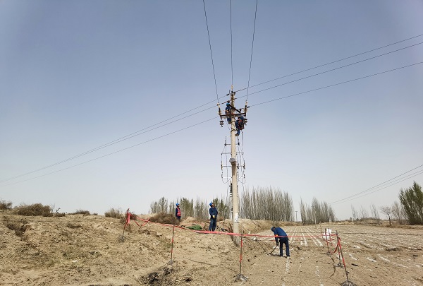 “今天我们的工作任务是为10千伏114双树线下沙子农场分支联接新建的10千伏线路。”随着工作负责人抬手一指,镜头前是几周前国网武威供电公司在这里新架设的一台配变,簇新的银色外壳映射着侧旁几名忙碌的“国网蓝”。只见杆上两名作业人员举重若轻,将地面人员拉起的绝缘导线揽入怀中,逐一完成挂线、紧线……整个施工现场忙而不乱、井然有序,透过镜头看去,跃动的国网蓝点缀着周遭黄色的天地也变得灵动起来。