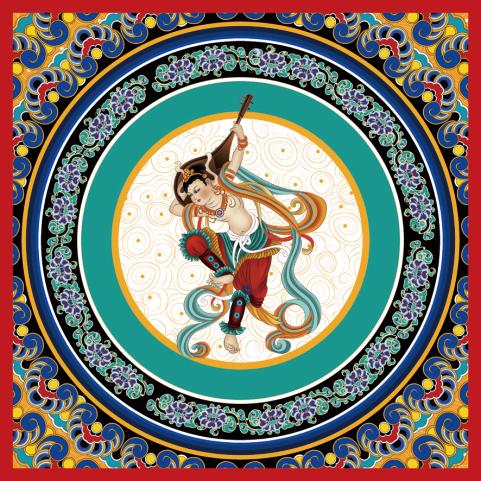 她在作品中融入飞天、九色鹿、藻井等敦煌文化符号。大胆借鉴敦煌壁画色彩体系,将传统色彩与文化元素融入设计。她还设计了雨伞、抱枕、饰品等文创产品,例如丝绸材质项链,灵感源自敦煌壁画,从色彩到图案,每一处细节都蕴含着深厚的敦煌文化底蕴。