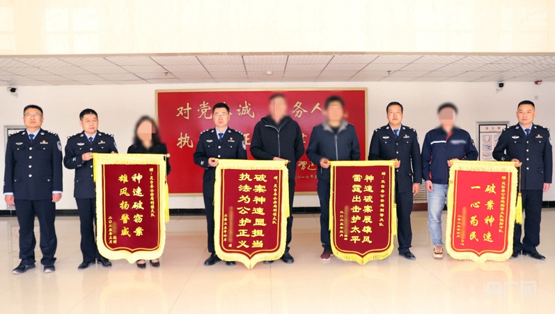 受害群众向灵台公安送警旗表谢意(央广网发 灵台县公安局供图)