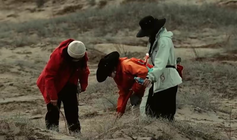 甘肃省武威市民勤县东、西、北三面被巴丹吉林和腾格里两大沙漠包围。近日,来自全国各地的志愿者自发来民勤县种树,有梭梭、沙蒿、花棒、柠条……他们“拥抱”大漠,用铁锹“写诗”。(剪辑:刘欣瑜、唐慕洁 拍摄:马爱彬)