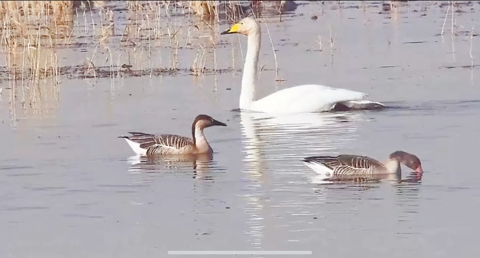 近日,张掖黑河湿地国家级自然保护区管理局监测人员通过湿地智慧管理平台,首次监测到国家重点保护野生动物鸿雁和花脸鸭的珍贵影像。如今,张掖黑河湿地内植被丰富,水质优良,成为中亚候鸟迁徙通道的重要“驿站”,每年的迁徙季,都有大批候鸟在此停歇补食。(姚克喜 方园)