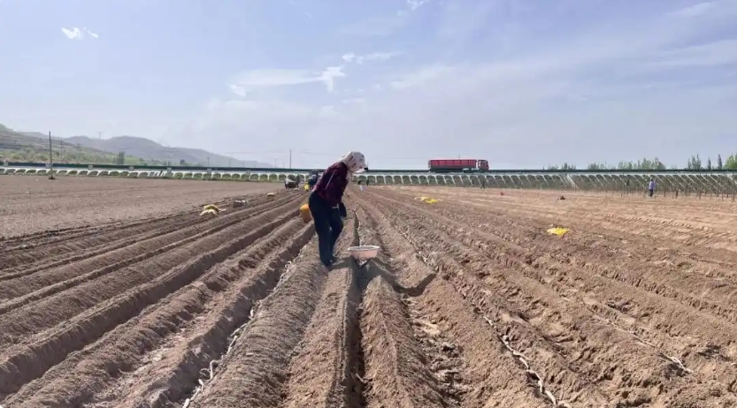 时下,正值山药种植的黄金时节,走进甘肃省平凉市崆峒区花所镇信河村的千亩山药种植基地,伴随着机械的轰鸣声,村民们分工明确、配合默契,齐心协力开展山药种植,田间地头随处可见热火朝天的劳作景象。