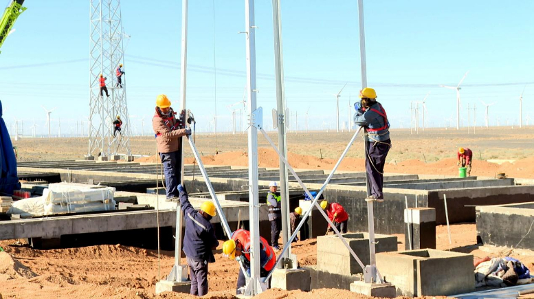 中节能(肃北)风力发电有限公司副场长运鸿表示:“中节能风力发电有限公司在马鬃山地区是装机45万千瓦的一个风电,计划安装两台50兆乏的一个调相机。目前项目的土建已经全部完成,现在进入项目设备安装阶段,计划5月份开始设备调试,5月底并网发电。”