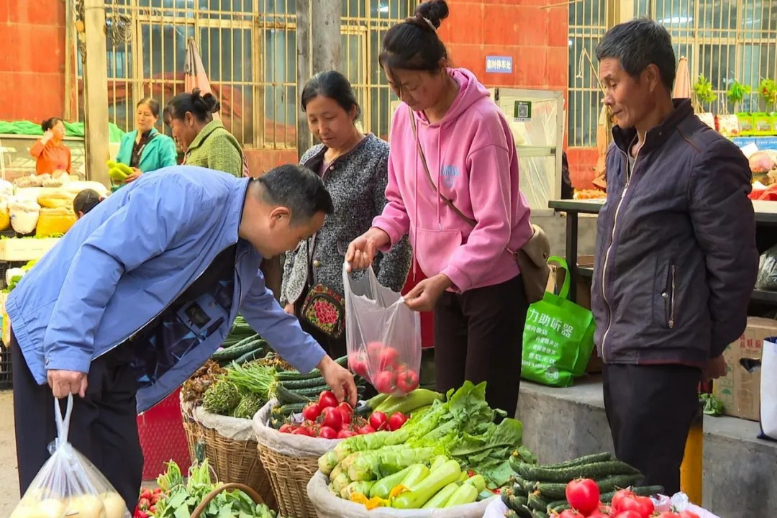 “这些菜都是自家地里现摘的,天没亮就运来,特别的新鲜!”峰迭镇瓜咱村摊主杨含条一边麻利地理菜,一边笑着招呼顾客。