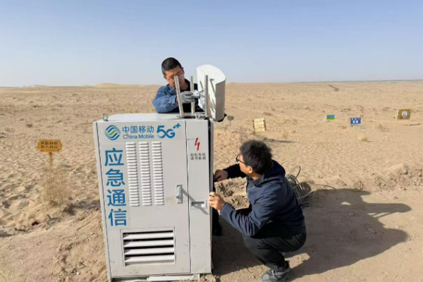 面对沙漠腹地突增的通信需求,甘肃移动闻令而动,第一时间组织10名技术专家成立应急通信保障突击队,实施现场通信网络保障。这次保障甘肃移动亮出了5G黑科技:依托亚太6D高通量卫星架起了“超级基站”,通过全天候毫米级波束对星技术,应用多频段动态功率优化算法,为现场提供峰值达800Mbps的5G通信服务,同时应用自主研发的双链路智能切换系统,实现70ms内网络无缝切换,智能运维平台实施7×24小时网络质量监测,隐形守护每棵树苗茁壮成长。