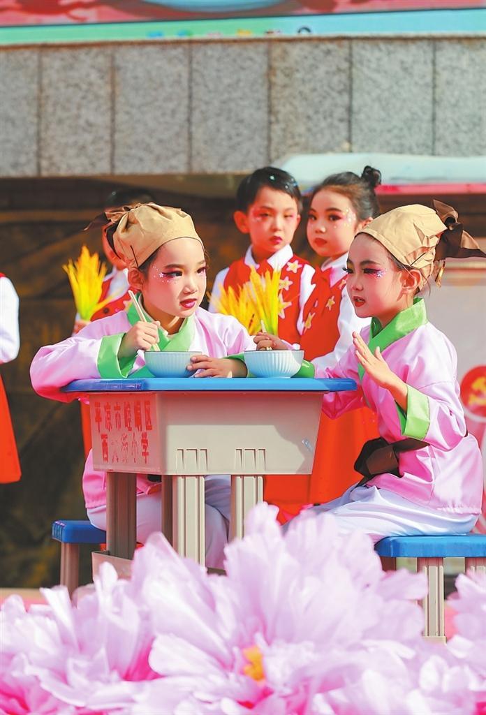 近日,平凉市实验小学五一班的同学们身着各式古典服装,用生动传神的表演,演绎《三国演义》《红楼梦》等名著的经典片段,赢得台下师生的阵阵掌声。