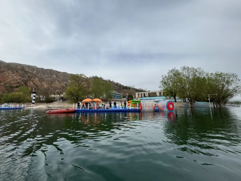 抵达向阳码头时,夕阳正缓缓沉入刘家峡水库的尽头。湖面波光粼粼,游船划开金色的涟漪,远处祁连山的轮廓若隐若现。倚栏远眺,对岸的炳灵石林如赤色屏风矗立,丹霞地貌的嶙峋与湖水的柔美形成强烈反差,仿佛自然在此挥洒出最极致的对比美学。值得一提的是,在这里你也可以体验水上项目,在这里尽情享受破浪乘风的快乐。