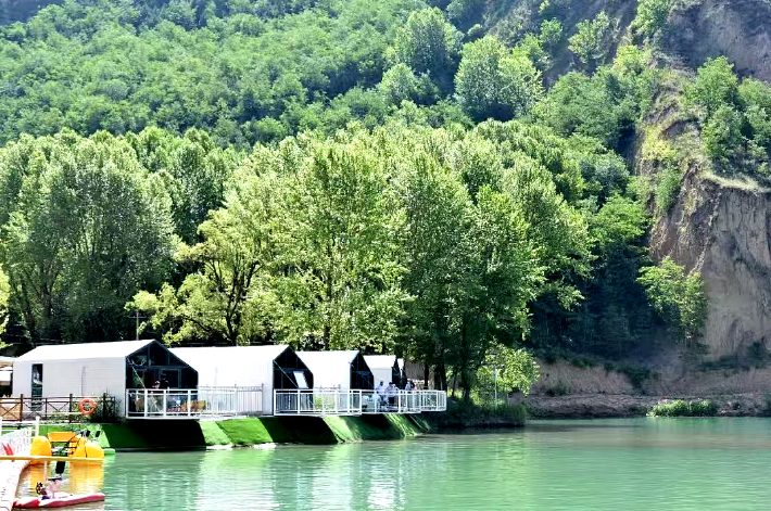为持续做好本土优质文化元素与旅游资源的融合发展,县上通过文化赋能,有效盘活了北石窟驿景区并申创为国家4A级景区,同时聚焦书画非遗展示、丝路文化体验等元素,开展北石窟驿景区业态布设升级工作。夯土建筑与黄土高原地貌浑然一体,漫步石板街巷,古色古香的商铺鳞次栉比,让游客身临其境。同时还配套建设了亲子乐园、生态露营等休闲设施,满足了不同游客群众的需求。