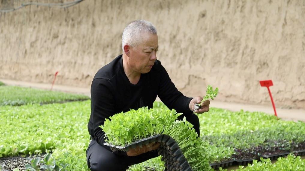 每年春天,甘肃省兰州市榆中县农业技术推广中心经作站站长杨海兴都会来到大棚里,和农民们一起完成高原夏菜的移植工作,这是他在这里工作的第33年。