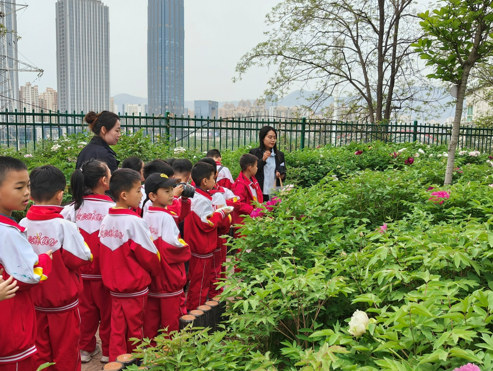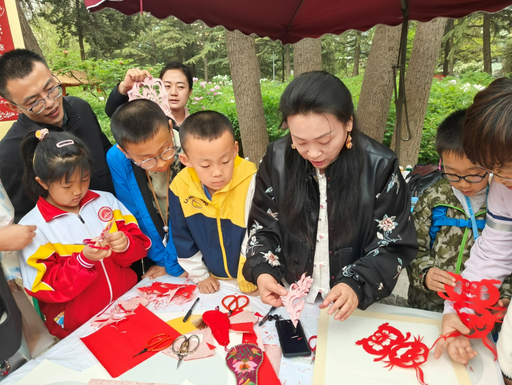 五十余名中小学生走进牡丹园,参加手工体验坊,亲手制作牡丹团扇、剪纸、诗词书笺,并在科学实验坊观察牡丹细胞切片,感受科学探索的趣味与传统文化的魅力。