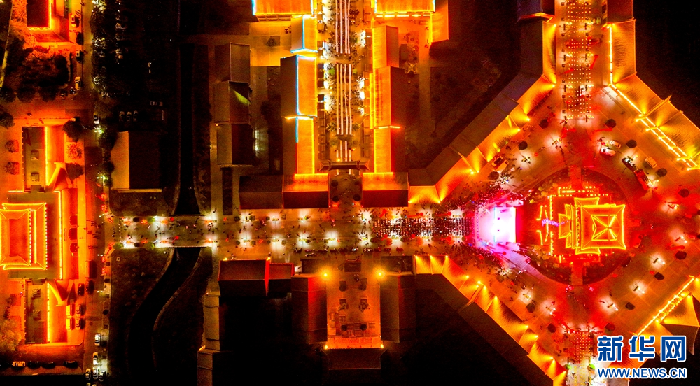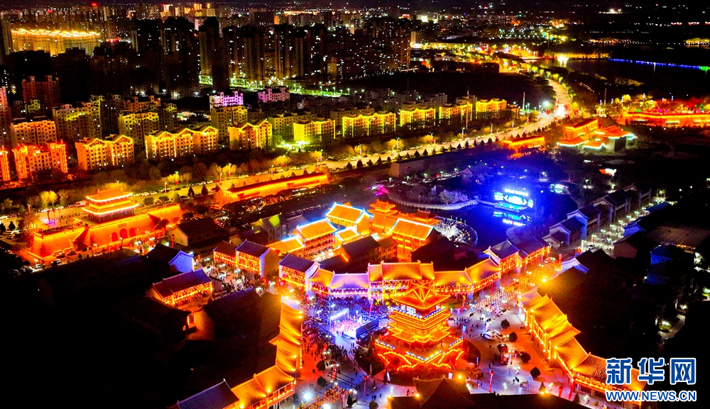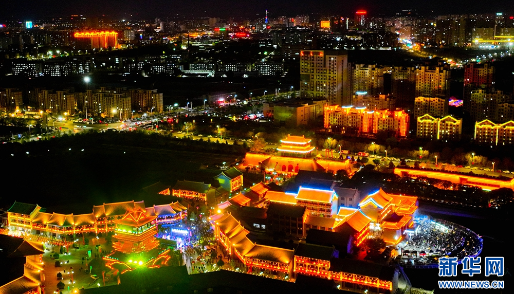 4月26日晚,甘肃省张掖市甘州区甘州府城文旅项目启动运营,游客可以观赏灯光秀、观看非遗展示、品尝西北美食,体验一步一景的古韵新风。目前,甘州府城打造了以钟鼓楼为文化艺术传播原点,南大街、长寿街为餐饮美食消费街区,西大街为文创及名优特产展销街区,东大街为亲子娱乐互动街区,北大街为“慢生活”体验街区的一站式旅游休闲新焦点。新华网发(王将 摄)
