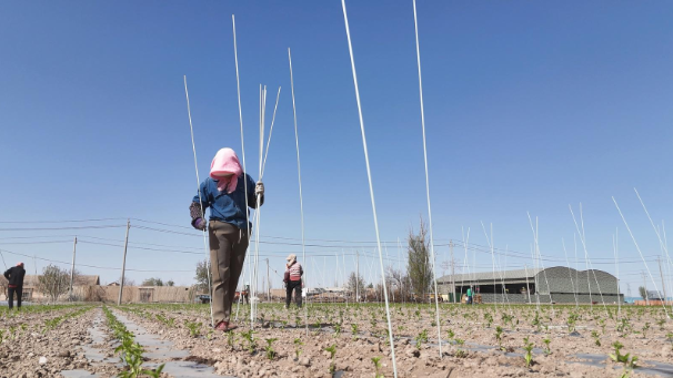 眼下正是红辣椒苗移栽的黄金时期,在永昌县朱王堡镇,种植大户李万林和工人师傅正在地里忙碌着。他们有的移栽辣椒苗,有的搭建小拱棚,确保辣椒苗住进舒适的温棚里。今年李万林种了26.67公顷辣椒,通过采用双膜覆盖种植技术,预计能提早20天左右上市,这样就能抢占商机,让辣椒卖个好价钱,增加收益。