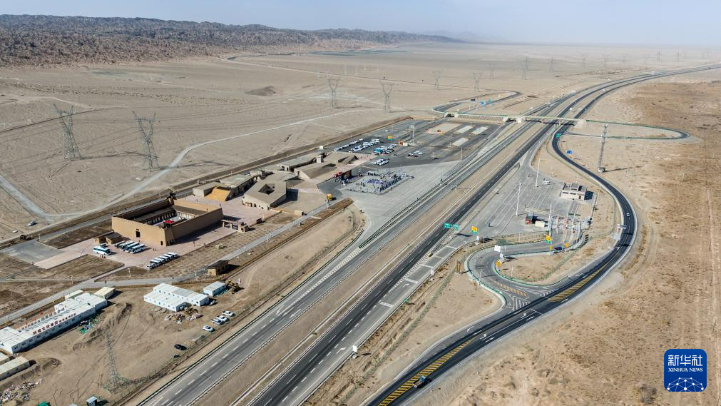 这是4月29日拍摄的敦煌悬泉置遗址景区。景区依托G3011柳格高速甜水井停车区而建,集高速服务、游客体验、文化展陈、特色商业等功能于一体(无人机照片)。新华社记者 郎兵兵 摄
