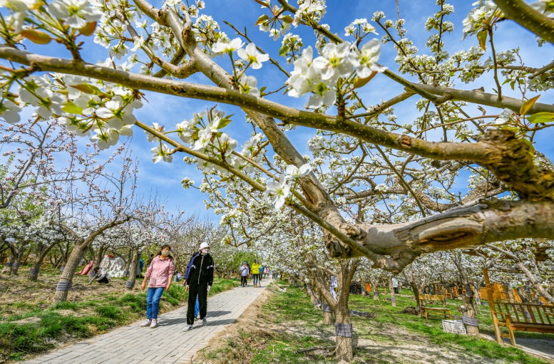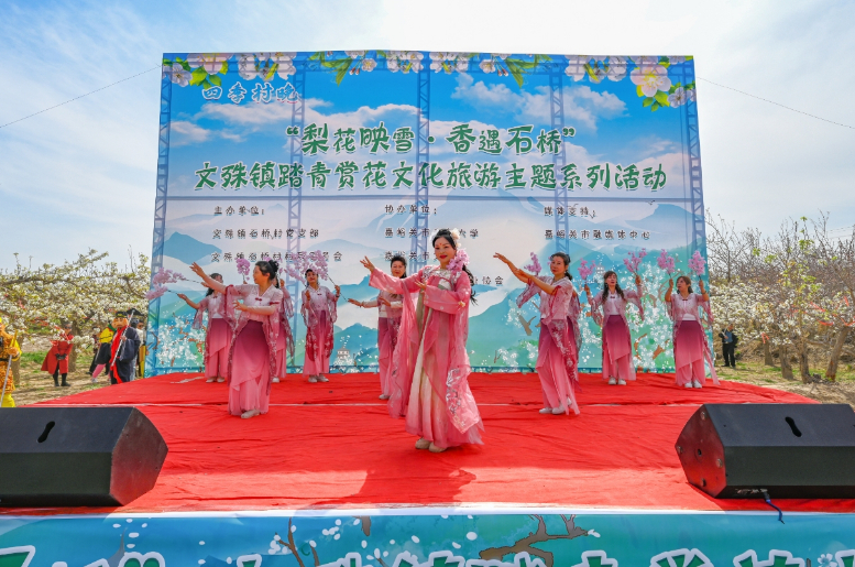 4月26日,文殊镇踏青赏花文化旅游主题系列活动在石桥村开幕,争相盛开的千亩梨花、精彩纷呈的文艺演出、创意有趣的互动节目,吸引了许多市民游客赏花游玩、打卡拍照。融媒体中心记者 李巍 摄