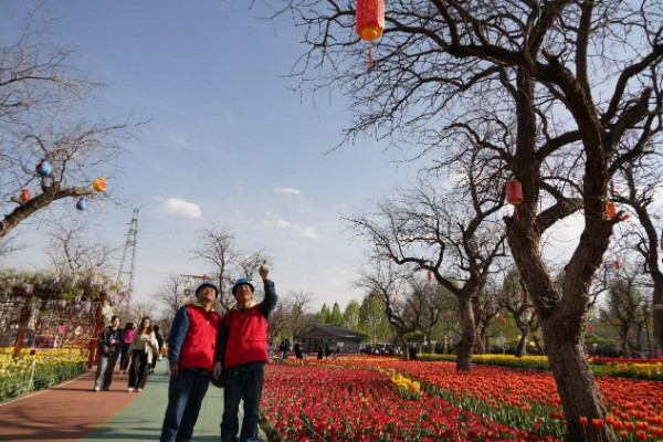4月初-5月中旬的赏花期内,各色郁金香争香斗艳,为各地游客提供着美丽的视觉盛宴。郁金香公园内,除白天欣赏各色花以外,夜晚,几十株百年枣树上挂满了各色的灯光带及灯笼,打造了美轮美奂的夜晚赏花景色。其间,郁金香公园内举办多场主题活动,为游客提供更加丰富的赏花体验。