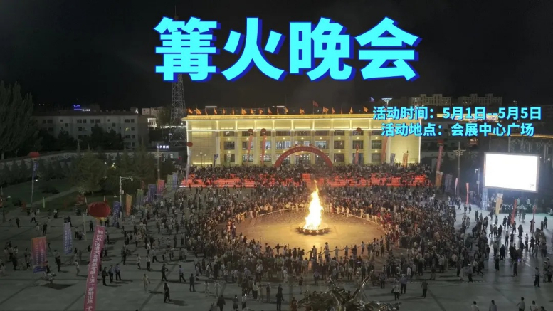 在会展中心广场,星空之下,熊熊的篝火发出耀眼的光芒,火焰攀升,民族歌曲演唱、集体黑走马舞蹈等接连上场,让观众沉醉于浓厚的民族风情之中。各民族群众手拉手围着篝火边唱边跳,用优美的歌声倾诉炽热情怀,用热情的舞蹈表达对美好生活的热爱。