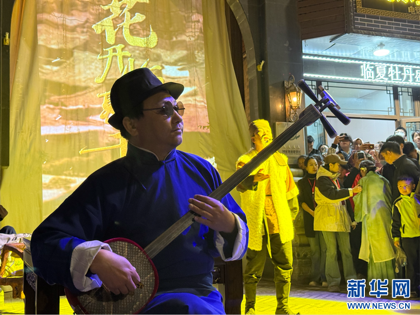 这是在临夏市八坊十三巷拍摄的沉浸式文旅剧《花开临夏五千年》表演。新华网发(田梓颖 摄)