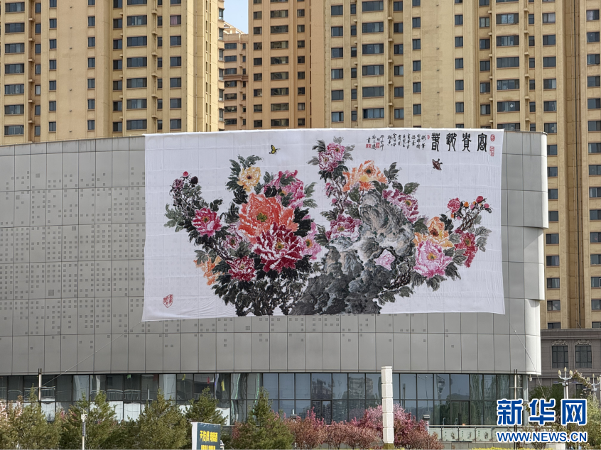 这是临夏奥体中心展出的《富贵迎春图》。新华网发(田梓颖 摄)
