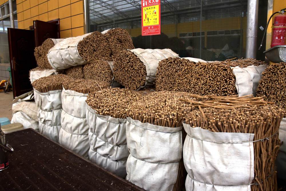 侯虎平家的院子里堆满了等待切片加工的中药材。新华社记者 王朋 摄