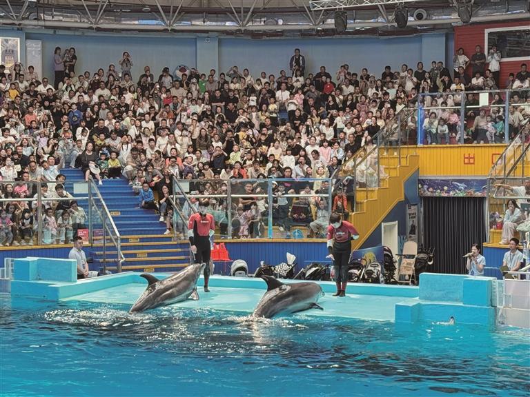 在这个“五一”假期,兰州市通过深挖文化内涵、打造特色线路、创新消费场景等举措,进一步丰富文旅产品供给,升级便民惠民服务,持续激发假日经济活力。图为兰州海洋公园里全新海豚表演受游客热捧。兰州日报社全媒体首席记者 李超 摄