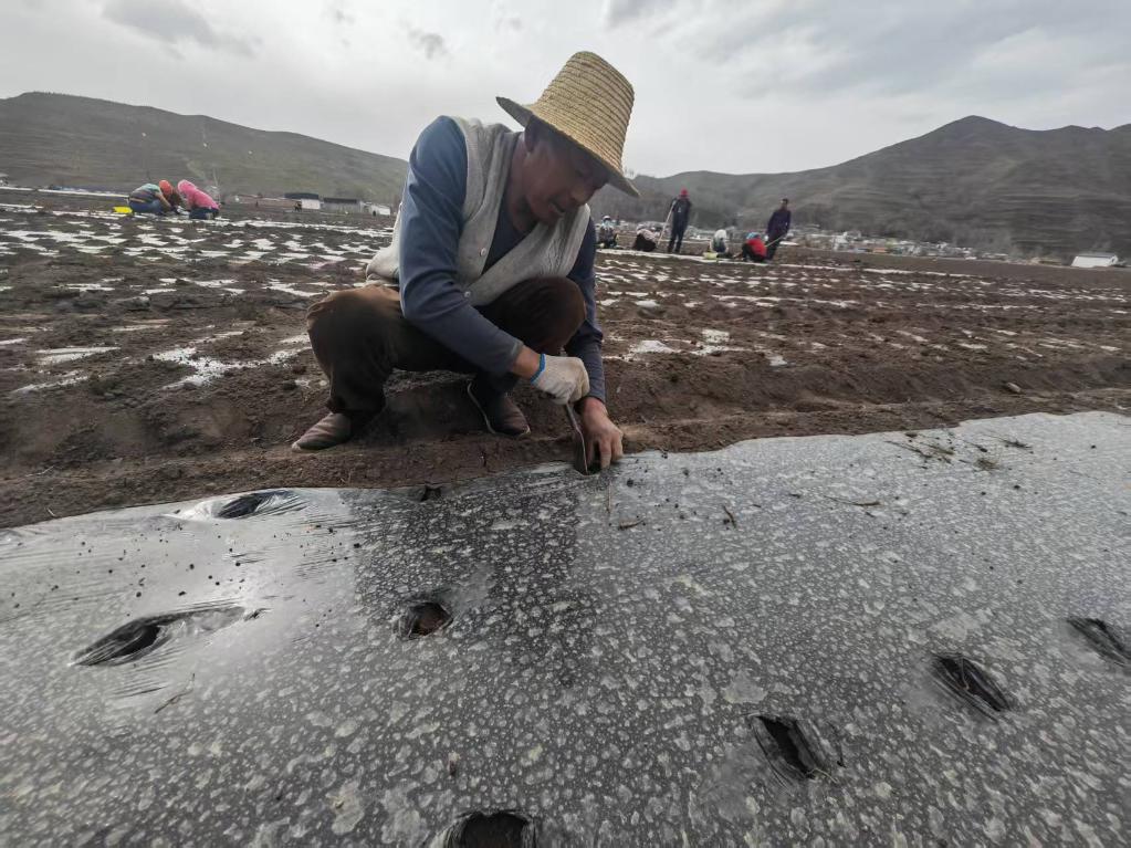 这是近期记者在甘肃省定西市岷县麻子川镇拍摄的药农种植当归画面。新华社记者王朋 摄