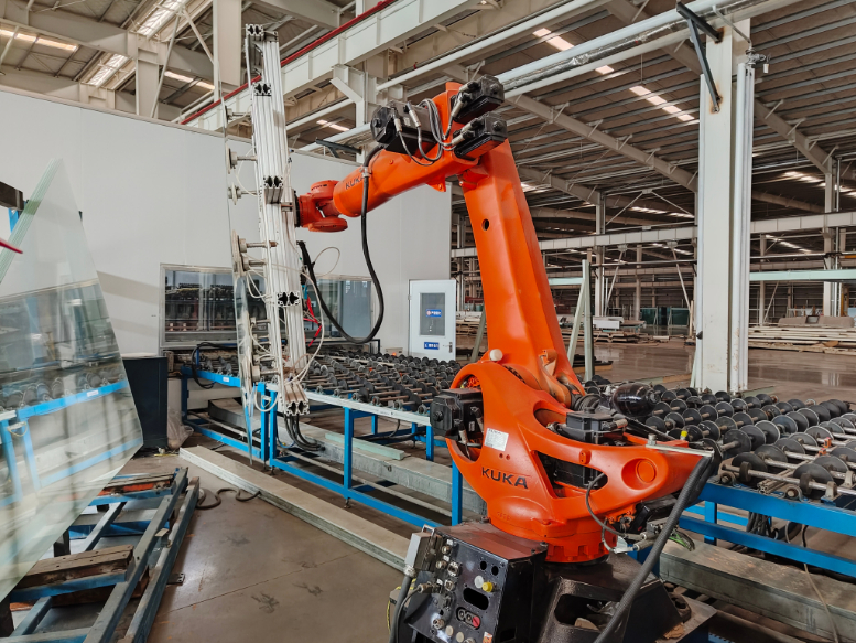 甘肃凯盛大明光能科技有限公司生产线上机械臂正有条不紊地工作着