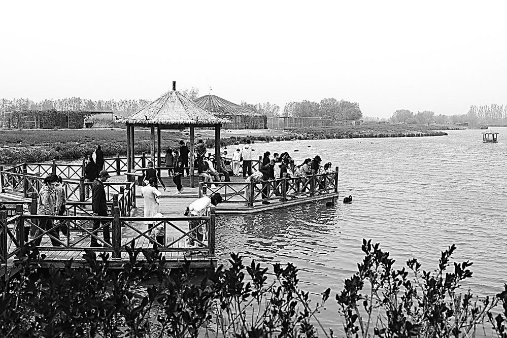 市民和游客在张掖国家湿地公园游玩。本报记者 成 林 摄